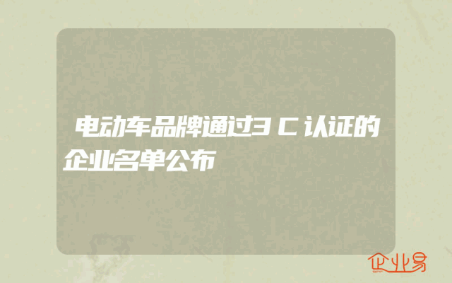 - 电动车品牌通过3C认证的企业名单公布一、3C认证背景简述随着电动车市场的快速发展,为保障消费者的权益和安全,国家实施了严格的质量安全标准,其中3C认证成为了电动车品牌进入市场的必要条件。通过3C认证的电动车品牌意味着其产品质量、安全