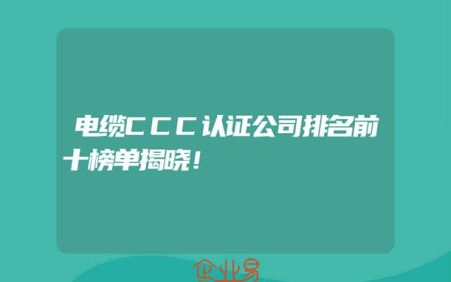 - 电缆CCC认证公司排名前十榜单揭晓!一、榜单概述随着电缆行业的不断发展,越来越多的企业开始注重品质与信誉,通过CCC认证成为企业提升自身竞争力的重要途径。近期,电缆CCC认证公司排名前十榜单揭晓,这些公司凭借其卓越的产品质量、良好的市场口碑