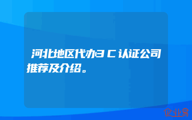 - 河北地区代办3C认证公司推荐及介绍一、河北地区代办3C认证概述在全球化日益发展的今天,产品质量认证成为企业进入市场的必备条件之一。作为中国重要的经济区域之一,河北地区的制造业蓬勃发展,众多企业纷纷寻求代办3C认证服务。本文将介绍几家在河北地