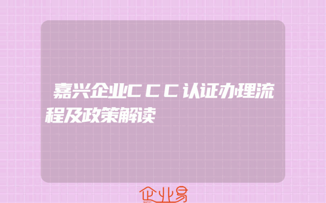 - 嘉兴企业CCC认证办理流程及政策解读一、CCC认证概述CCC认证,全称为中国强制产品认证制度,是中华人民共和国为保护消费者人身安全和国家安全,加强产品质量管理,实施的一种产品合格评定制度。对于嘉兴的企业而言,进行CCC认证是进入市场的重要一