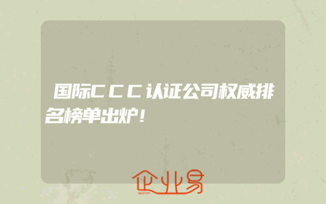 - 国际CCC认证公司权威排名榜单出炉!一、认证背景及意义随着全球经济一体化的深入发展,产品质量和安全性成为国际间关注的焦点。在这样的背景下,国际CCC认证的重要性愈发凸显。作为评估产品质量与安全的重要标准,CCC认证机构所发布的权威排