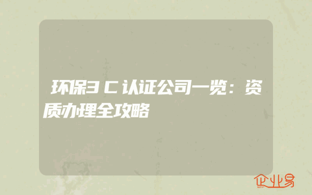 - 环保3C认证公司一览:资质办理全攻略一、环保3C认证概述随着环保意识的日益增强,环保相关的认证也越来越多,其中环保3C认证便是其中之一。环保3C认证是针对电子电器产品的一种认证,目的是确保产品环保性能达标。想要进行环保3C认证,选择一家合适