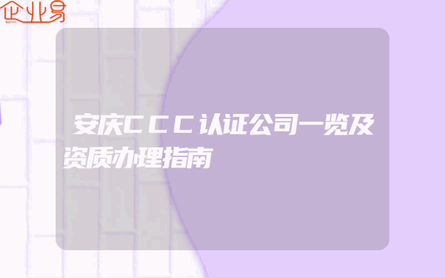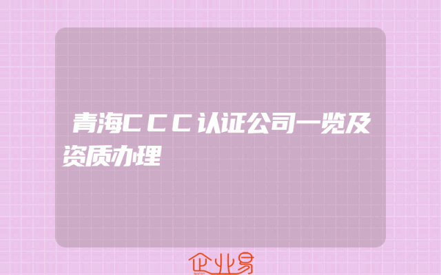 - 青海CCC认证公司一览及资质办理解析一、青海CCC认证公司概述在青海地区,不少公司提供CCC认证相关的服务。CCC认证作为产品质量安全的强制认证制度,越来越受到企业的重视。青海地区的CCC认证公司在提供企业资质办理方面发挥着关键作用