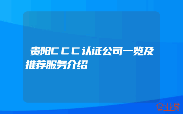 - 贵阳CCC认证公司一览及推荐服务介绍