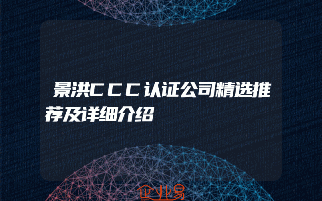 - 景洪CCC认证公司精选推荐及详细介绍一、景洪CCC认证公司概述在中国市场经济蓬勃发展的今天,景洪CCC认证公司作为企业服务行业的一颗璀璨新星,专注于为企业提供全方位的资质办理服务。其凭借深厚的专业知识、丰富的实践经验和卓越的团队能力,赢得了