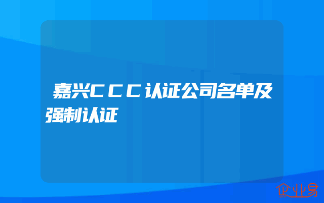 - 嘉兴CCC认证公司名单及强制认证解析一、嘉兴CCC认证公司概述在中国,CCC认证(中国强制产品认证)是对涉及人身安全、环境保护等方面的重要工业产品实施的强制性认证制度。嘉兴作为经济发达的地区,众多企业涉及相关产业,因此了解CCC认证