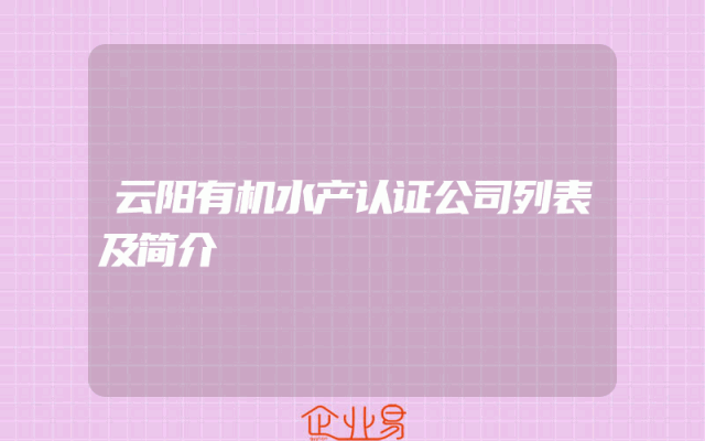 - 云阳有机水产认证公司列表及简介一、云阳地区有机水产认证概述在云阳地区,随着水产养殖业的蓬勃发展,越来越多的水产企业开始注重有机水产的认证。有机水产认证不仅提升了企业的品牌形象,还为消费者提供了更为健康、安全的食品来源。本文将详细介绍云阳地区