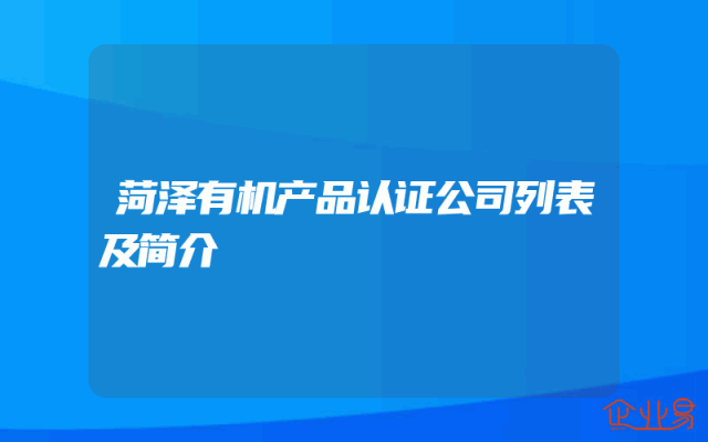 - 菏泽有机产品认证公司列表及简介一、引言随着有机产业的迅速发展,菏泽地区涌现出众多有机产品认证公司,为消费者和企业提供了优质的服务。本文将介绍菏泽地区有机产品认证公司的列表及其简介,从不同角度阐述这些公司的特色与优势。二、菏泽主要有机产品认证