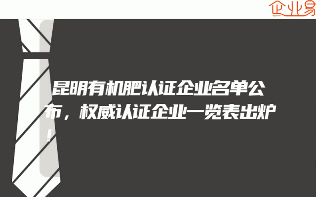 - 昆明有机肥认证企业名单公布,权威认证企业一览表出炉!