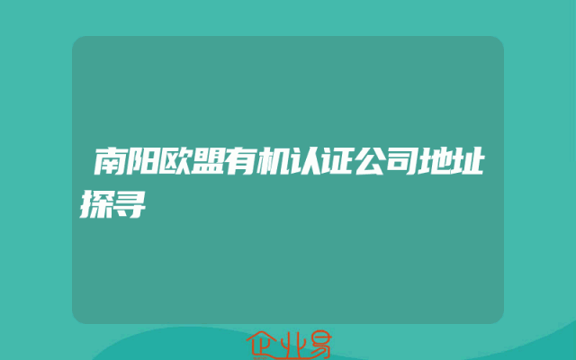 - 南阳欧盟有机认证公司地址探寻了解欧盟有机认证的重要性随着全球贸易的不断发展,欧盟有机认证在中国越来越受到企业的重视。南阳作为经济快速发展的地区之一,也有不少企业开始寻求欧盟有机认证,以提升产品品质和竞争力。因此,了解南阳地区欧盟有机