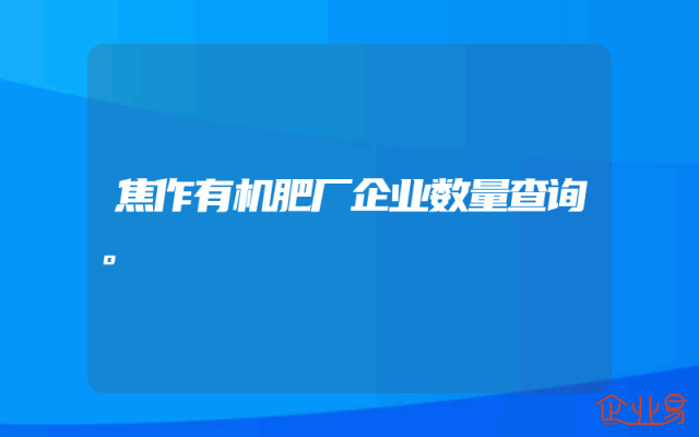 - 焦作有机肥厂企业数量查询及相关探讨一、引言随着农业产业的快速发展,有机肥在农业生产中的地位日益凸显。焦作市作为农业大市,有机肥厂企业数量也受到广泛关注。对于企业和投资者来说,了解焦作有机肥厂企业数量及行业趋势具有重要意义,这有助于更好地把握