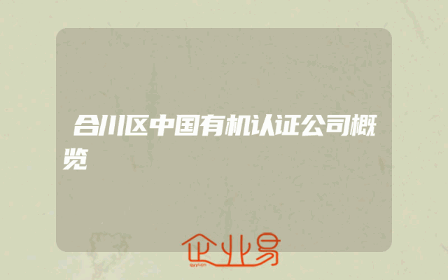 - 合川区中国有机认证公司概览一、公司概况位于合川区的中国有机认证公司,是一家专注于提供有机产品认证服务的专业机构。随着国内有机产业的蓬勃发展,该公司逐渐崭露头角,成为行业内具有影响力的权威认证机构之一。公司致力于为广大企业提供有机产品