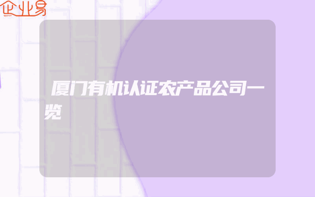 - 厦门有机认证农产品公司一览一、厦门有机认证农产品公司概述厦门,这座美丽的海滨城市,不仅以其独特的自然风光和繁荣的经济著称,还在有机农业领域取得了显著的发展。众多厦门有机认证农产品公司如雨后春笋般涌现,为消费者提供健康、绿色的有机食品。这些公