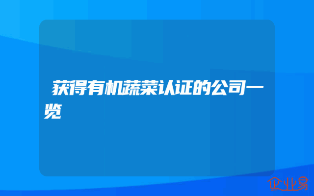 - 有机蔬菜认证的公司一览一、引言随着人们对食品安全的关注度不断提升,有机蔬菜作为健康绿色食品的代表,受到越来越多消费者的青睐。因此,市场上涌现出了一批致力于有机蔬菜种植与销售的公司,并积极参与有机蔬菜认证。下面我们就来了解一下目前获得有机蔬菜