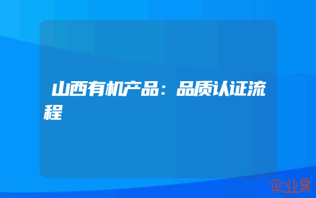 - 山西有机产品:品质认证流程