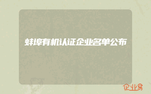- 蚌埠有机认证企业名单公布