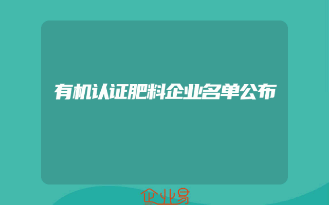 - 有机认证肥料企业名单公布