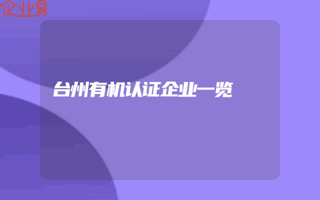 - 台州有机认证企业一览