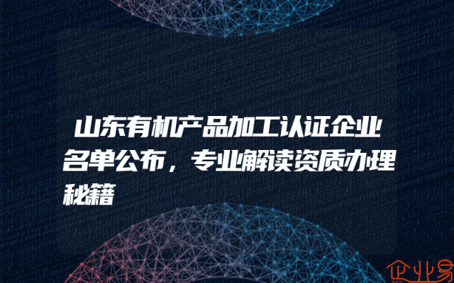 - 山东有机产品加工认证企业名单公布,专业解读资质办理秘籍