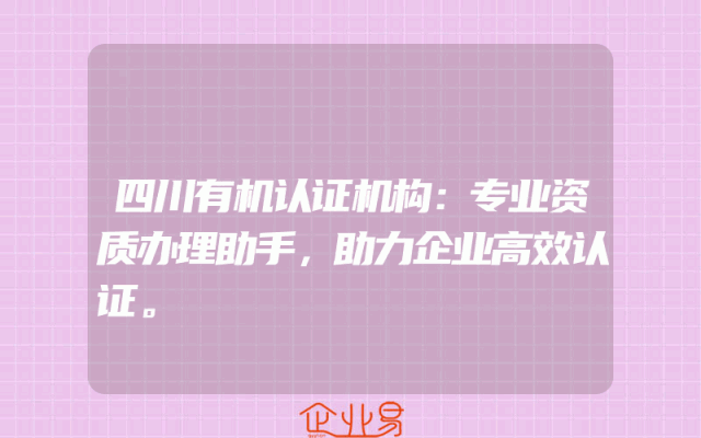 - 四川有机认证机构:专业资质办理助手,助力企业高效认证。