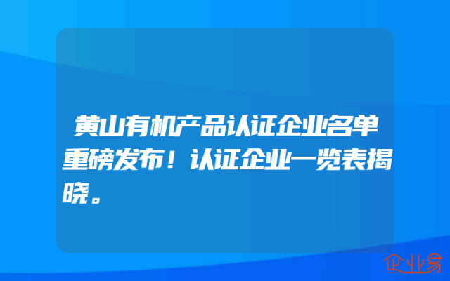 - 黄山有机产品认证企业名单重磅发布!认证企业一览表揭晓。