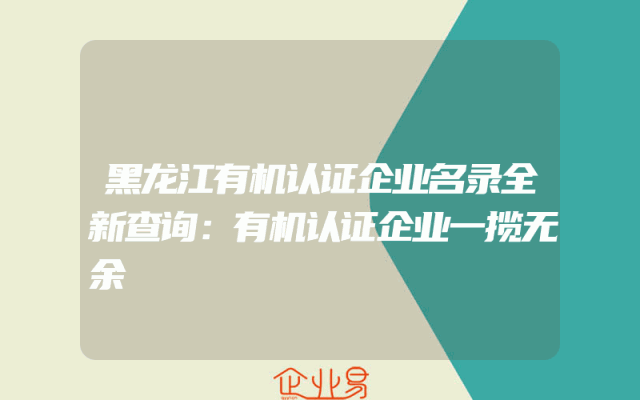 - 黑龙江有机认证企业名录全新查询:有机认证企业一揽无余