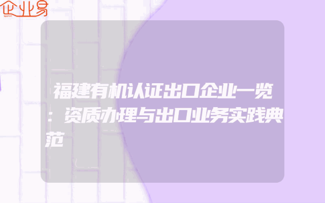 - 福建有机认证出口企业一览:资质办理与出口业务实践典范