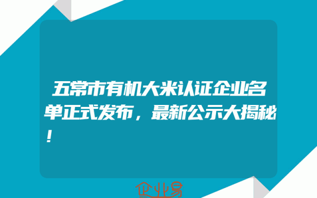 - 五常市有机大米认证企业名单正式发布,最新公示大揭秘!