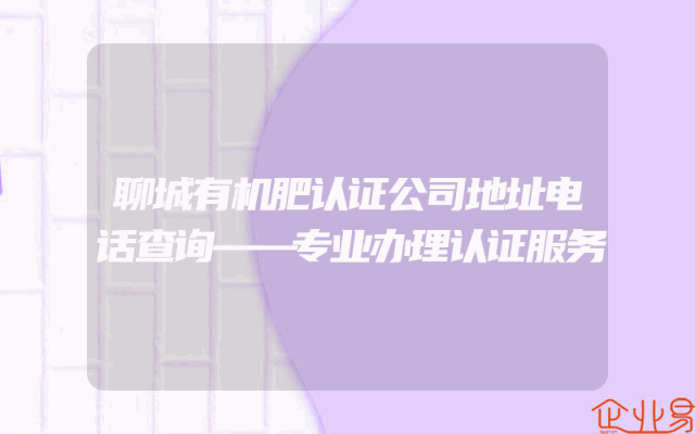 - 聊城有机肥认证公司地址电话查询——专业办理认证服务