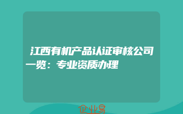- 江西有机产品认证审核公司一览:专业资质办理
