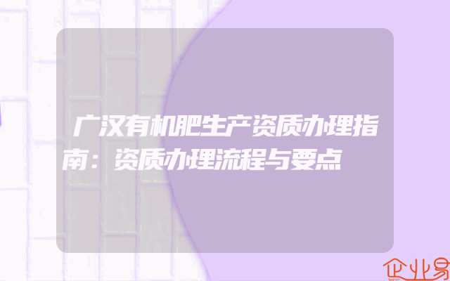 - 广汉有机肥生产资质办理指南:资质办理流程与要点