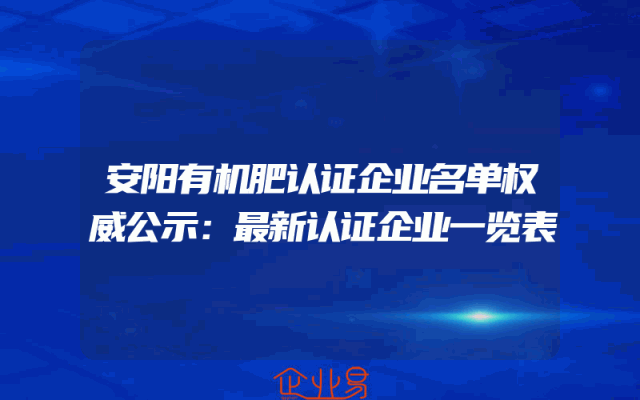 - 安阳有机肥认证企业名单权威公示:最新认证企业一览表