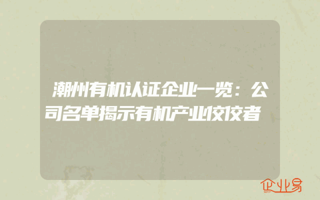 - 潮州有机认证企业一览:公司名单揭示有机产业佼佼者