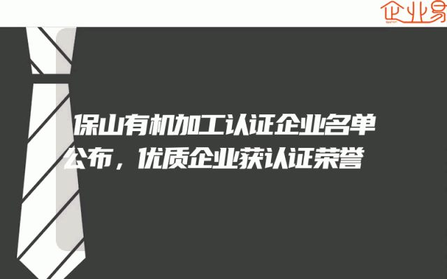 - 保山有机加工认证企业名单公布,优质企业获认证荣誉
