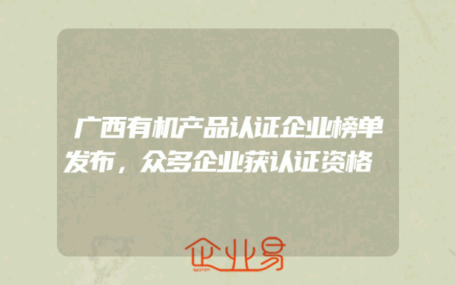 - 广西有机产品认证企业榜单发布,众多企业获认证资格
