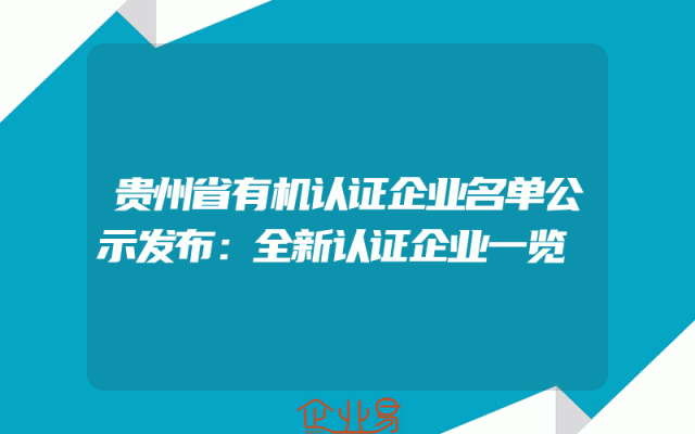 - 贵州省有机认证企业名单公示发布:全新认证企业一览