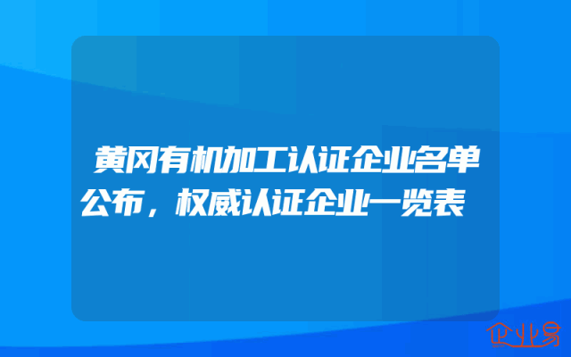 - 黄冈有机加工认证企业名单公布,权威认证企业一览表