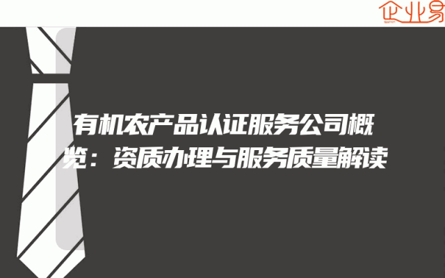 - 有机农产品认证服务公司概览:资质办理与服务质量解读