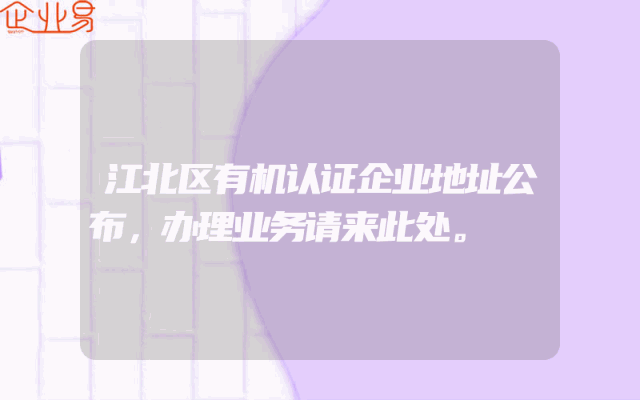 - 江北区有机认证企业地址公布,办理业务请来此处。