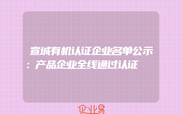 - 宣城有机认证企业名单公示:产品企业全线通过认证