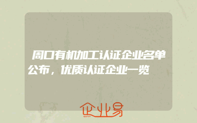- 周口有机加工认证企业名单公布,优质认证企业一览
