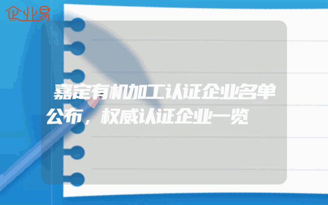 - 嘉定有机加工认证企业名单公布,权威认证企业一览