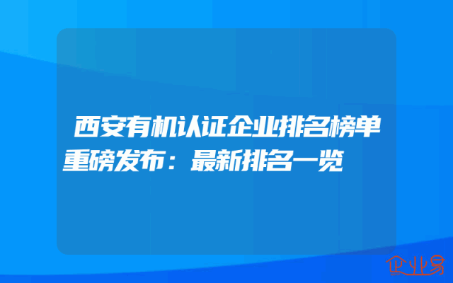 - 西安有机认证企业排名榜单重磅发布:最新排名一览