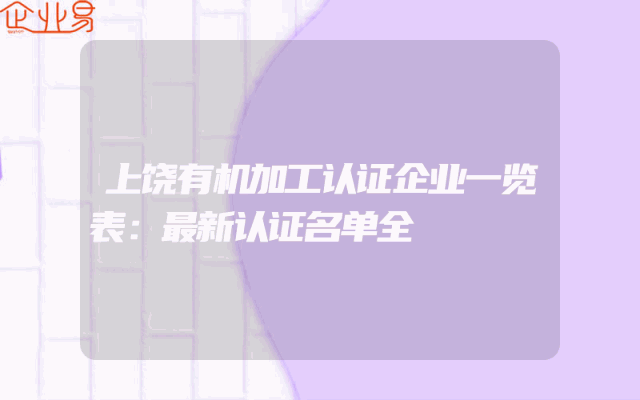 - 上饶有机加工认证企业一览表:最新认证名单全