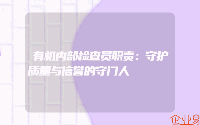 - 有机内部检查员职责解析:守护质量与信誉的守门人一、引言随着企业规模的扩大和市场竞争的加剧,有机内部检查员的角色愈发重要。他们是守护产品质量与信誉的守门人,确保企业的生产和服务满足既定的标准和要求。本文