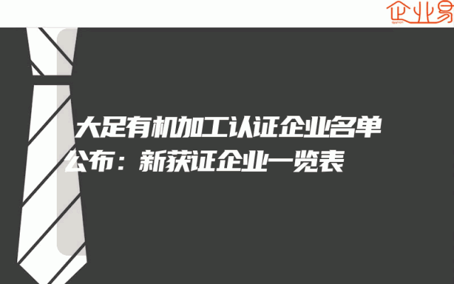 - 大足有机加工认证企业名单公布:新获证企业一览表