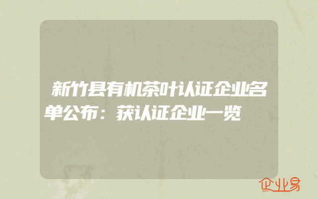 - 新竹县有机茶叶认证企业名单公布:获认证企业一览