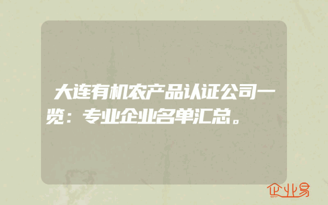 - 大连有机农产品认证公司一览:专业企业名单汇总。