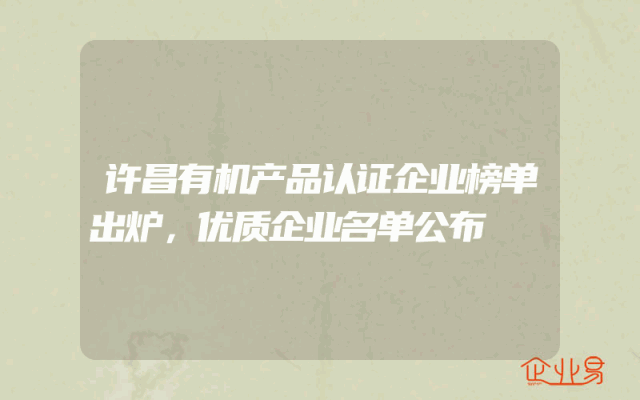- 许昌有机产品认证企业榜单出炉,优质企业名单公布