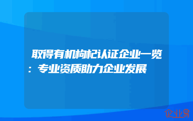 - 取得有机枸杞认证企业一览:专业资质助力企业发展